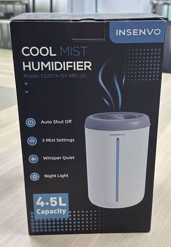 INSENVO Air Humidifier for Plants Baby Nursery, 1.18Gal Cool Mist Top Fill Humidifiers with 3 Mist levels, Auto Shut Off, Night Light, 360° Nozzle, Anti-Spill