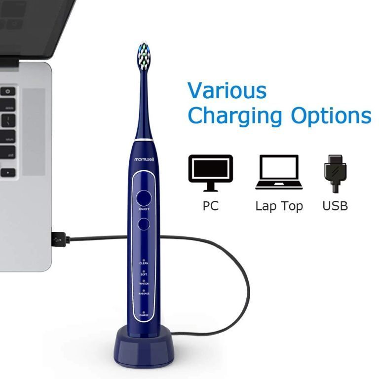 * ??Ultra-powerful Motor & Ultra-Quiet design?: Teeth cleaning by manual toothbrush is not enough. Mornwell sonic electric toothbrush delivers up to 40,000 strokes per minute and removes 10x more dental plaque and food debris along the gumline than manual brush.The rechargeable sonic toothbrush equips with 650mAh battery, which could last up to 30 days (2 min/2x a day) for a full charge. Ultra-Quiet design, lower noise than others sold on the market.
