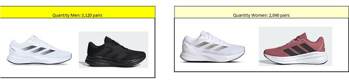Total: 1 050 pairs (20% Junior shoes)