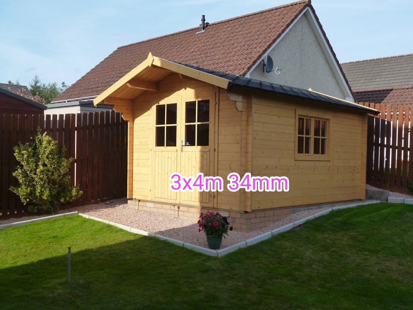 34 mm 3x4m and 3x4.50 m impregnated plastic windows and doors ready, if needed.