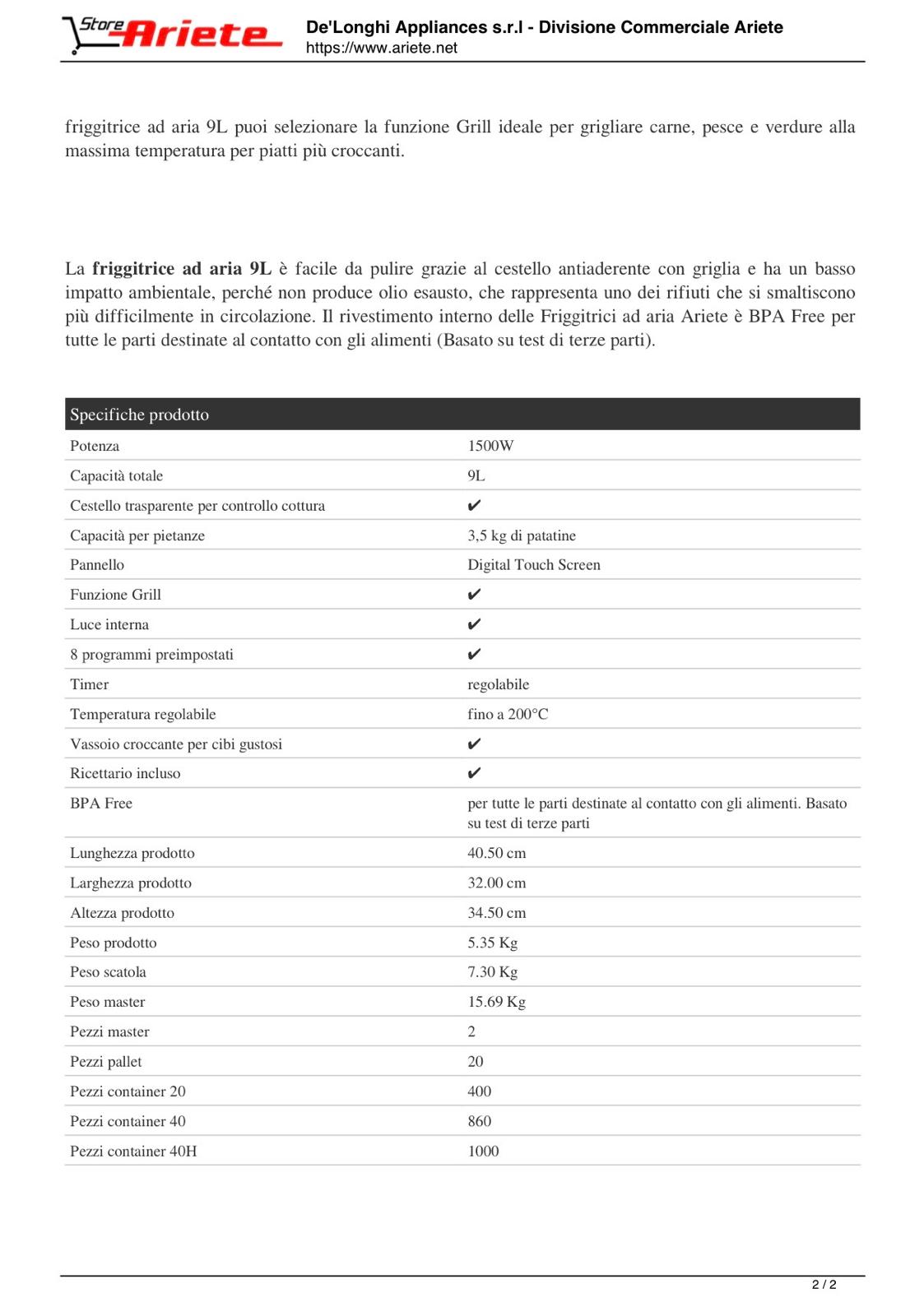 66792 - Friggitrice ad aria 9L | 4630 Ariete Nero | Ariete Store Europe