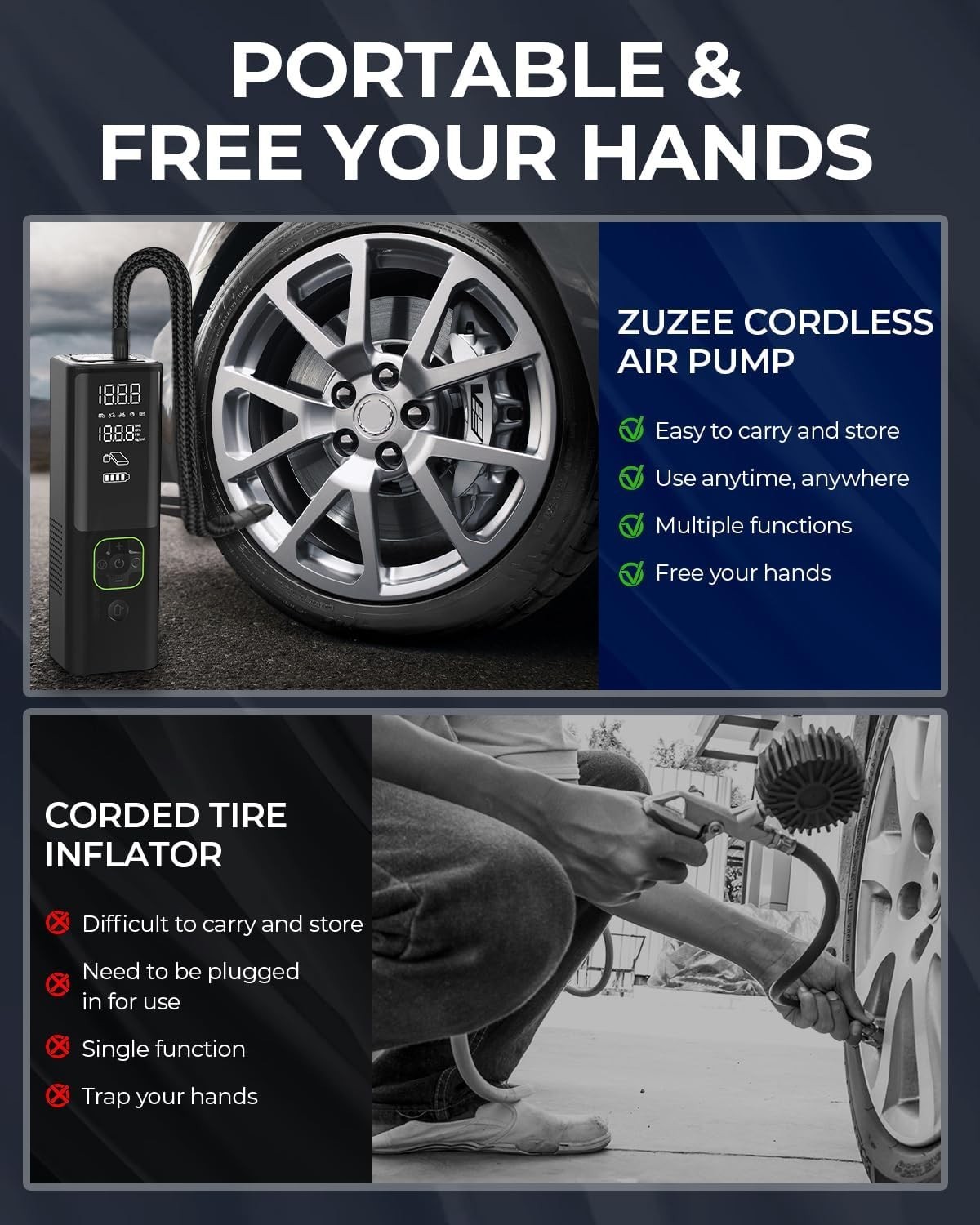ZUZEE 150PSI Portable Tire Inflator with Power BankTotal: 1 700 unitsPrice take all: 12.95$ pcs. EXW: LA, USA