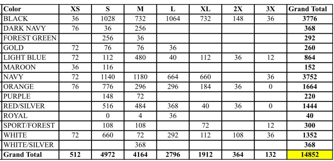 Total: 14 852 pcs. packed 36 pcs. to the case per color