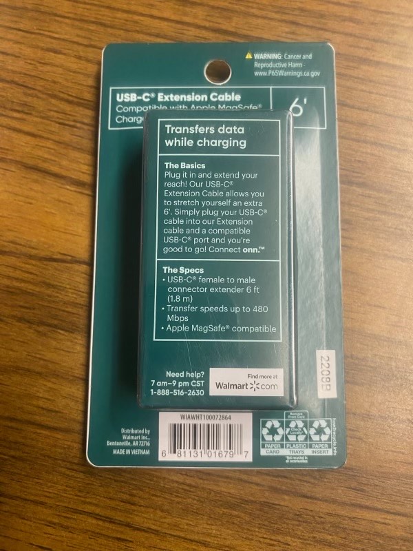 65629 - CONNECT ONN 6ft USB-C Extension Cable Compatible with Apple USA
