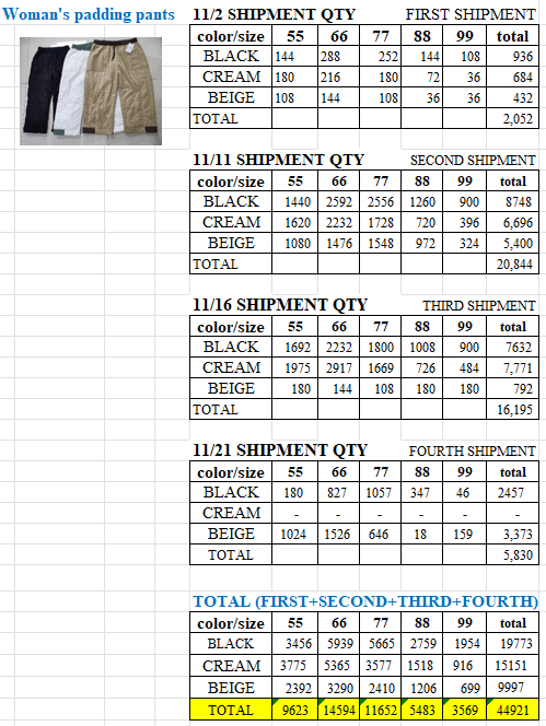 STOCK OFFERS FROM ASIA : Clothing