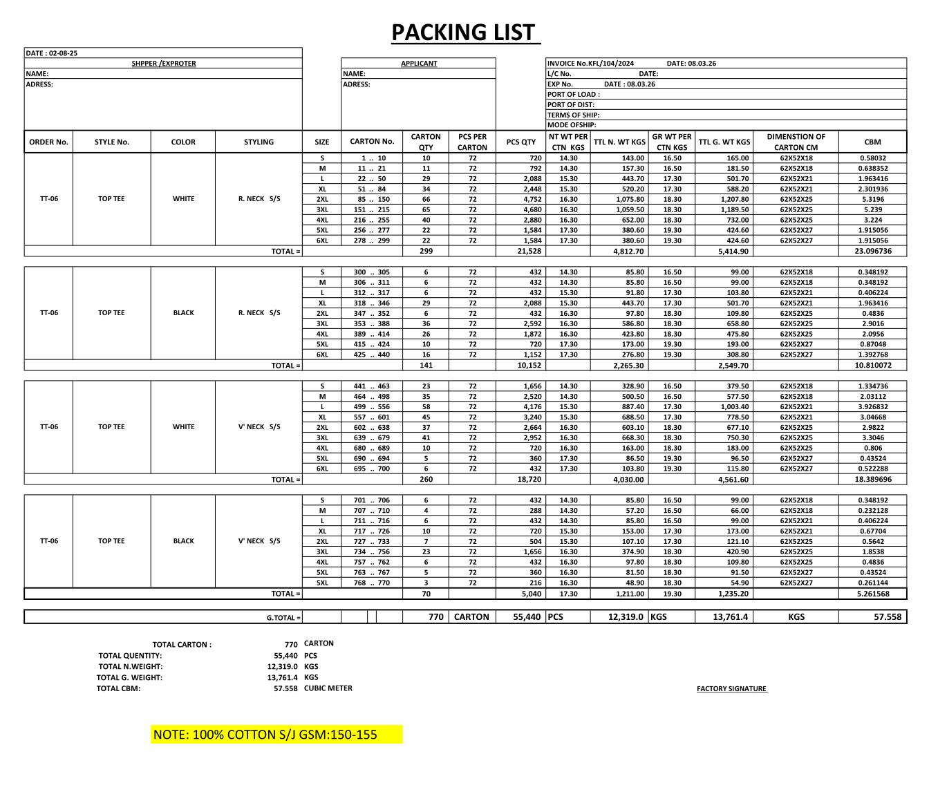 BLACK- V Neck S/S-9 720 PCS.