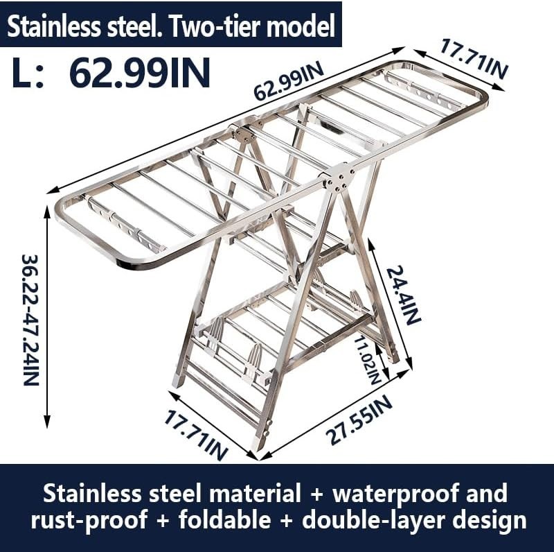 MIKEE 3-Tier Foldable Stainless Steel Clothes Drying ...