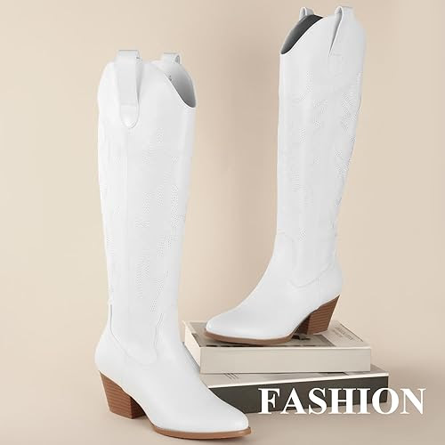 Women's Comfortable Cowgirl Boots with Embroidered Design